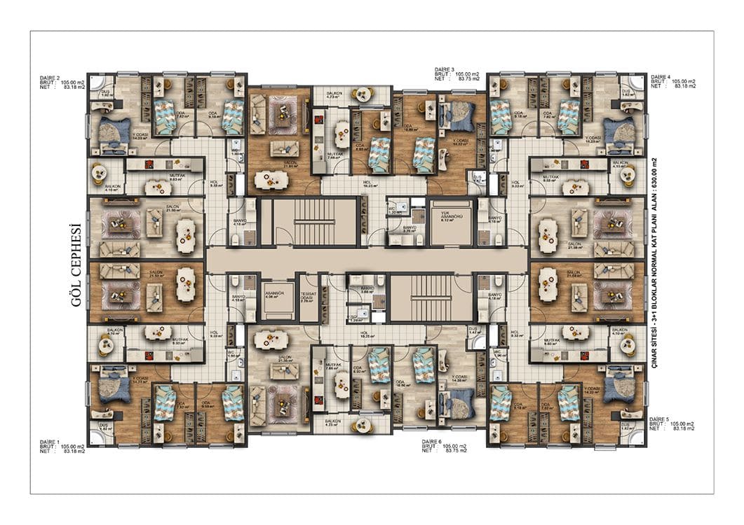- Daire Tipleri: 1+1 2+1 ve 3+1 Daireler